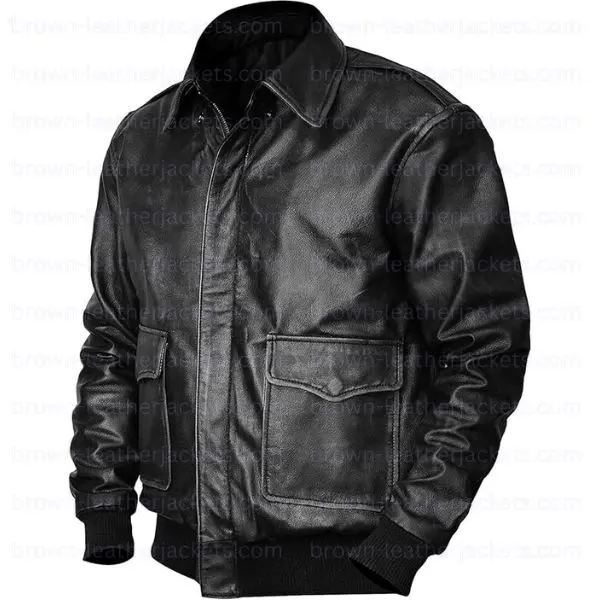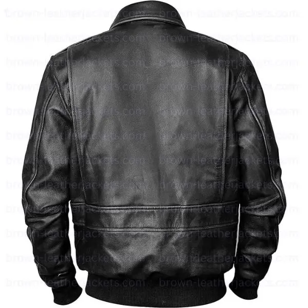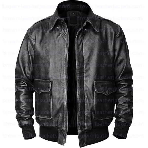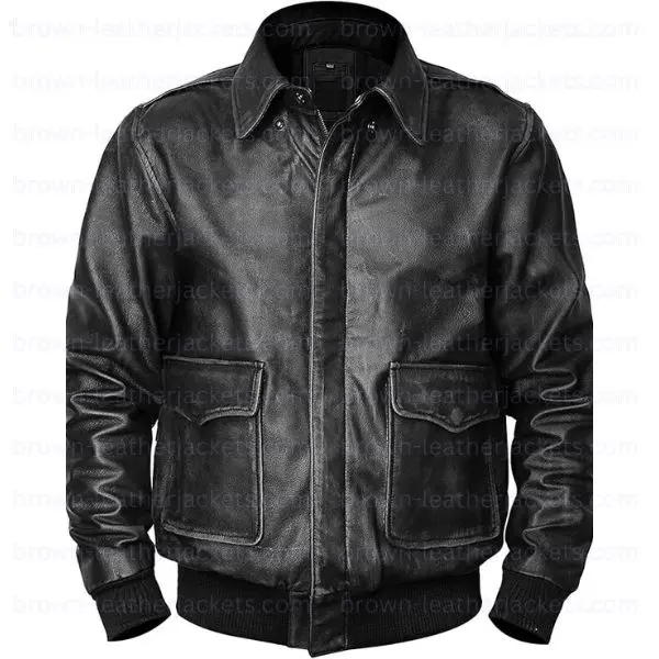 Mens A-2 Military Naval Force Aviator Distressed Black/Brown Flight Bomber Leather Jacket