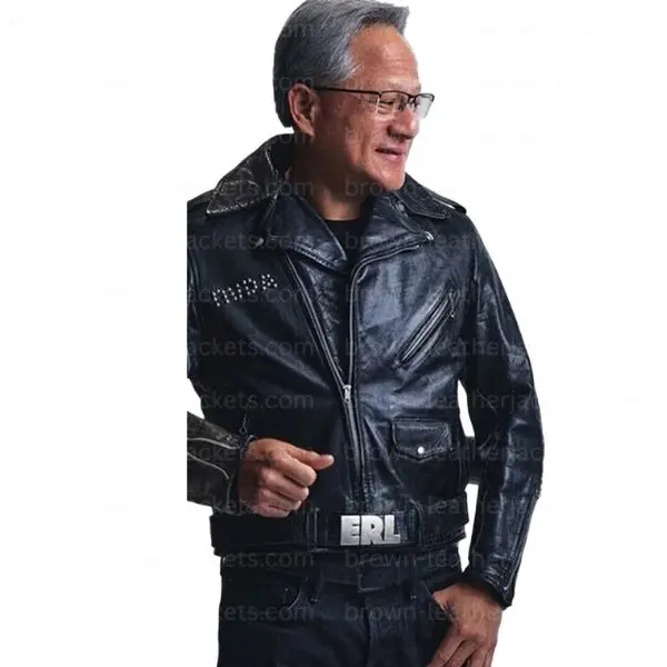 Invest in this jacket which is more than a garment it is a statement of a confident, stylish and elegant lifestyle. If you are a biker jacket fan or you are looking to add a high end leather piece to your collection the Nvidia CEO Jensen Huang ERL Black Biker Jacket is the piece for you.