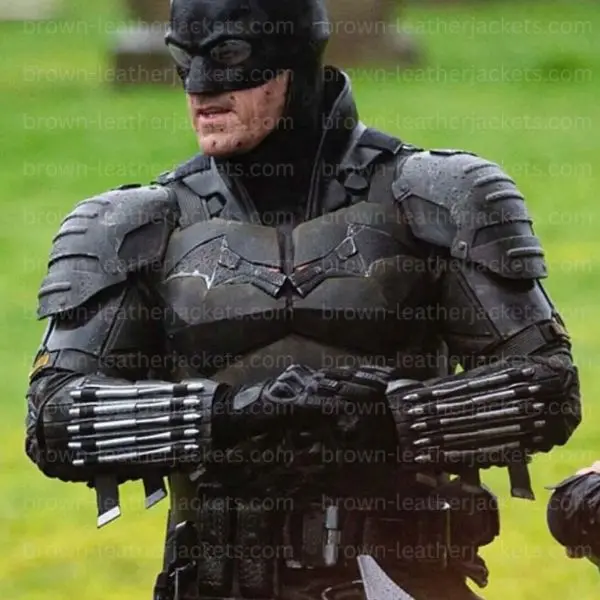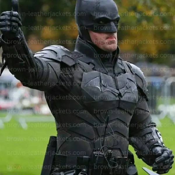 In 2022 Robert Pattinson brought his take on Bruce Wayne to the big screen and we now present his costume as a vest jacket. This is a strong and powerful piece which pays homage to the look of the vigilante of Gotham. Made with great attention to detail this tactical armored vest jacket brings to life the essence of Robert Pattinson’s take on Batman from the film. We have options of real leather or high quality faux leather which gives the piece durability as well as a very striking look that fans and collectors will love. The black waist length jacket has a stand up armored neck guard and front zipper closure which in turn is accented by adjustable buckle straps that enhance its rugged battle ready look. In the chest we see reinforced armor which sports a bat emblem and padded shoulders which put into play the Dark Knight’s suit elements thus adding to the authenticity and bold fashion edge. Also included are functional utility belt loops which give this piece a practical edge which in turn makes this vest great for cosplay, themed events or everyday wear for true Batman fans. In the interior we have used soft viscose and mesh linings which in turn give way to great breathability and comfort, also the slim tactical cut which we present gives a very sharp, defined look that brings out the athletic silhouette. If you are into living out the Bruce Wayne experience or just into the Dark Knight look this The Bruce Wayne Jacket is the perfect balance of style, strength and movie theater flair.