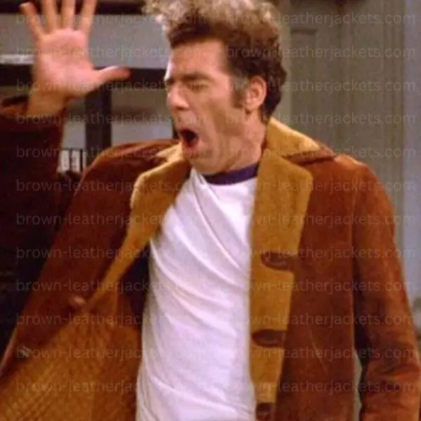 Whether you put on jeans and a t-shirt for a casual day out or break out the best of your fashion statement pieces to honor Kramer’s style, this Michael Richards brown suede jacket is the piece that brings together vintage appeal and modern ease.