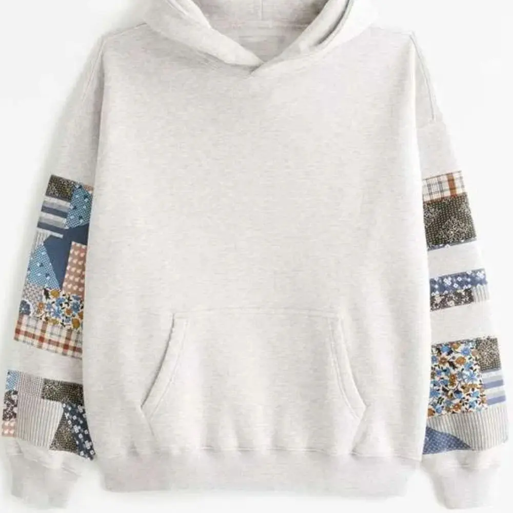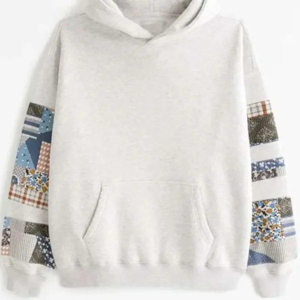 Designed with a hooded collar and pull over closure this hoodie is a snug yet very comfortable fit. It’s the patchwork print that really stands out and gives it a modern edge which also we see in the neutral grey color that makes it easy to throw on with jeans, joggers or casual trousers. For a walk, a get together with friends or just relaxing at home this Fleece Hoodie is the go to piece that gives you comfort and timelessness.