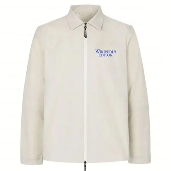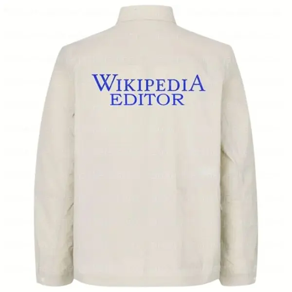 To keep that jacket in like new condition we recommend machine washing in cold water on a gentle cycle or hand wash which you should avoid using bleach with; also do not put it in the dryer. Instead always air dry out of the sun to preserve color and any embroidery, and we also have iron it out on low heat when you must. This jacket is great for everyday wear in the street, at casual events, it is a fit for the fashion aware as well as the average Wikipedia reader. With proper care your Wikipedia Editor Jacket will be a staple in your wardrobe for many years to give you comfort, trend with it, and a little bit of that movie star feel every time you put it on.