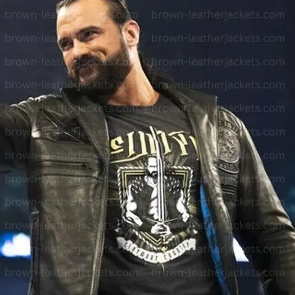 Drew Mcintyre WWE Raw Black Biker Leather Jacket